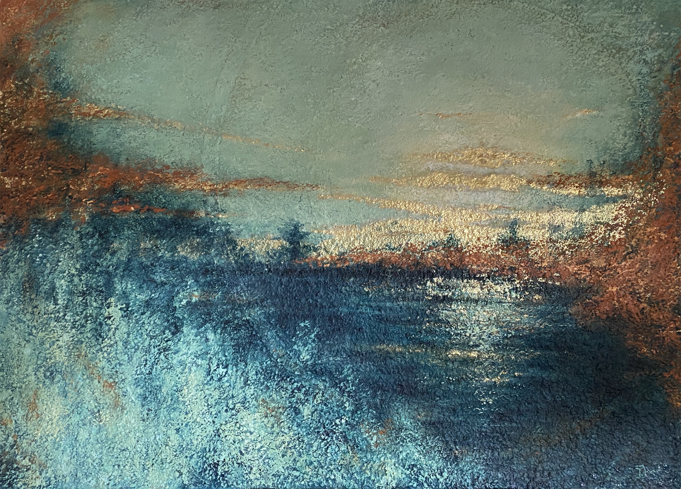 Zij werkt met verschillende technieken, ondergronden en materialen. En laat zich inspireren door bekende en onbekende kunstenaars, mooie fotografie, architectuur en natuur.